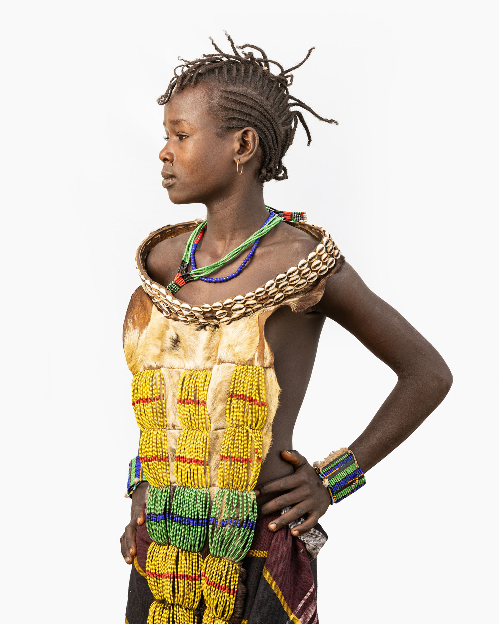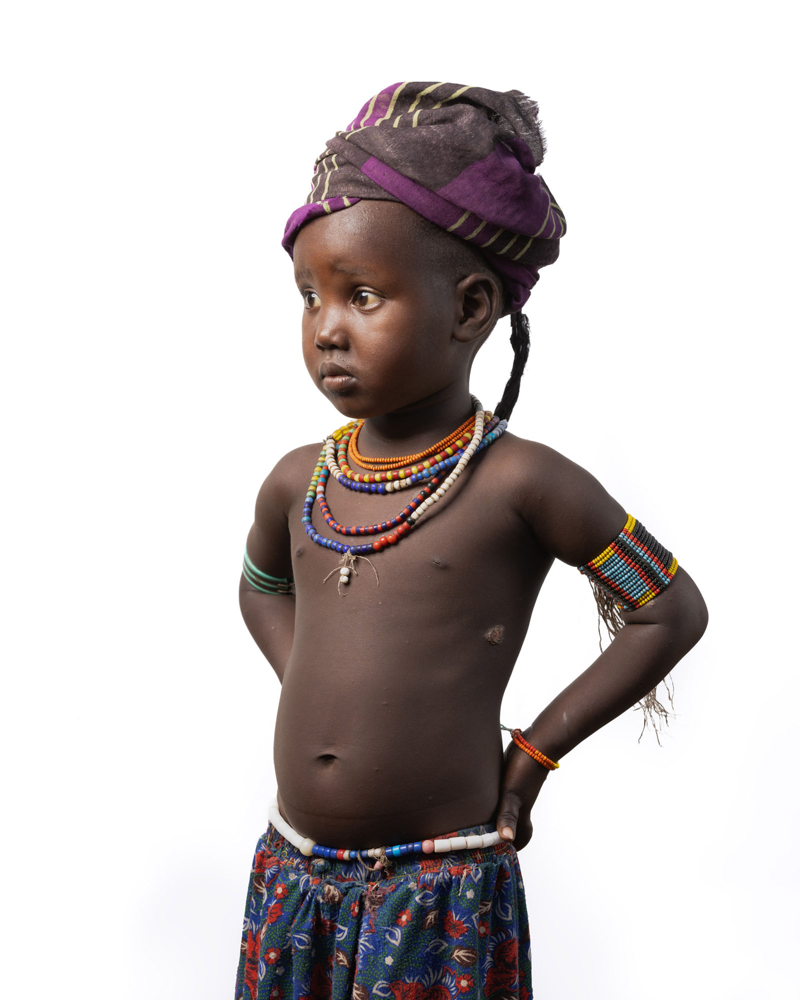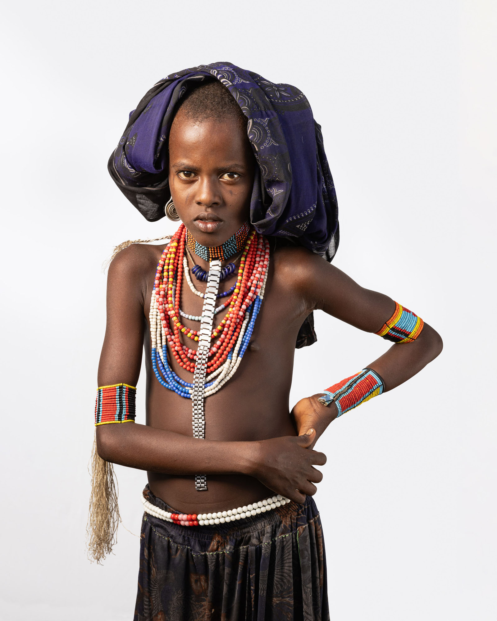 This photography project explores the rich cultural diversity of the tribes of the Lower Omo Valley in Ethiopia through minimalist portraits set against a white background. By isolating each subject, the focus shifts to traditional clothing, body art, ornaments, and hairstyles that define identity and heritage. Each tribe presents a distinct visual language shaped by tradition and environment, while differences between men, women, and children are reflected in unique accessories, body painting, scarification, beadwork, and adornments that signify age, status, and cultural roles within the community.