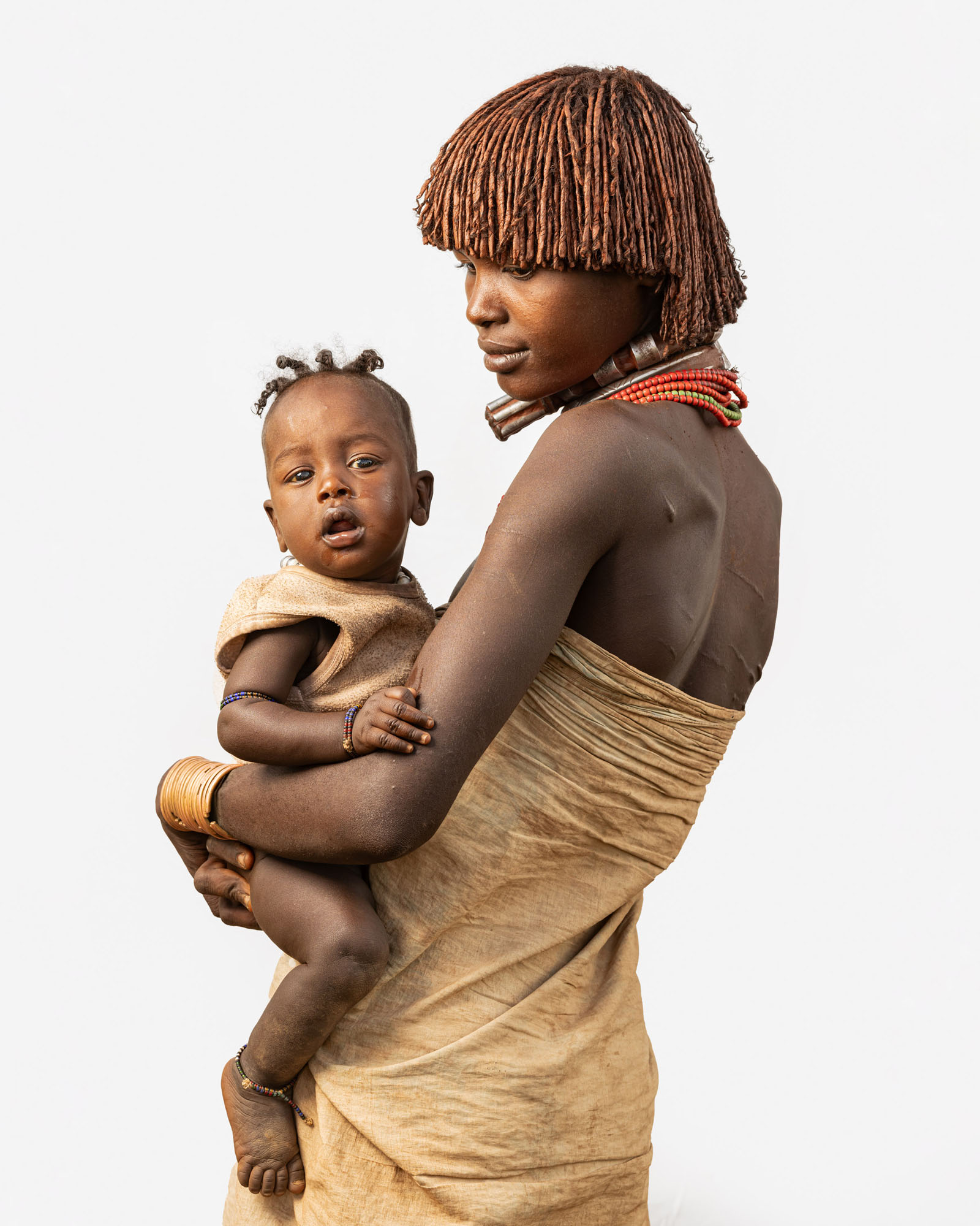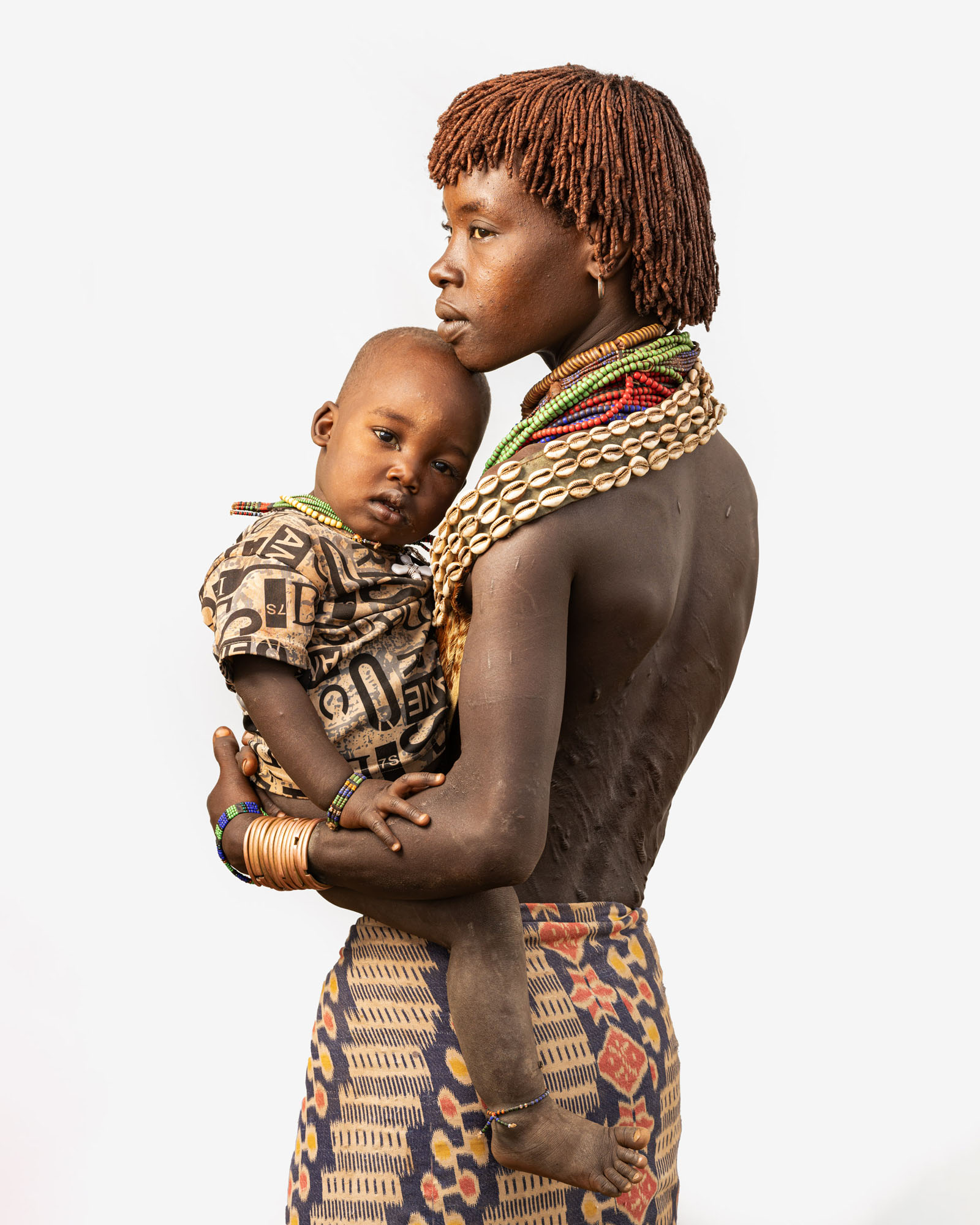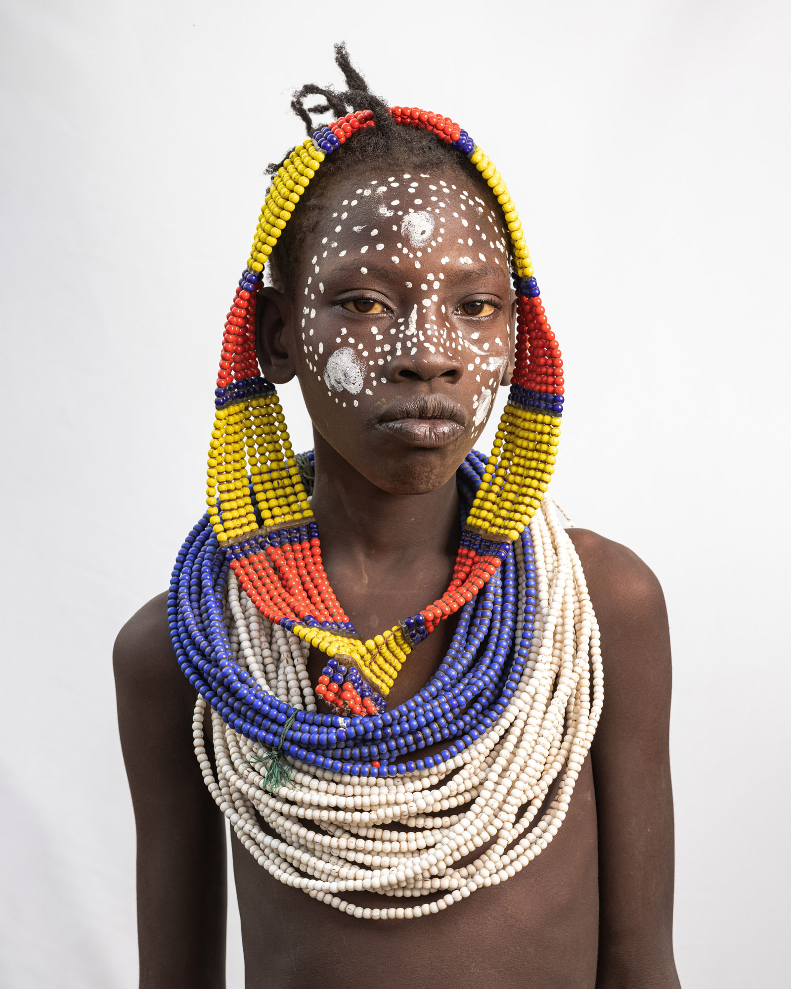 This photography project explores the rich cultural diversity of the tribes of the Lower Omo Valley in Ethiopia through minimalist portraits set against a white background. By isolating each subject, the focus shifts to traditional clothing, body art, ornaments, and hairstyles that define identity and heritage. Each tribe presents a distinct visual language shaped by tradition and environment, while differences between men, women, and children are reflected in unique accessories, body painting, scarification, beadwork, and adornments that signify age, status, and cultural roles within the community.