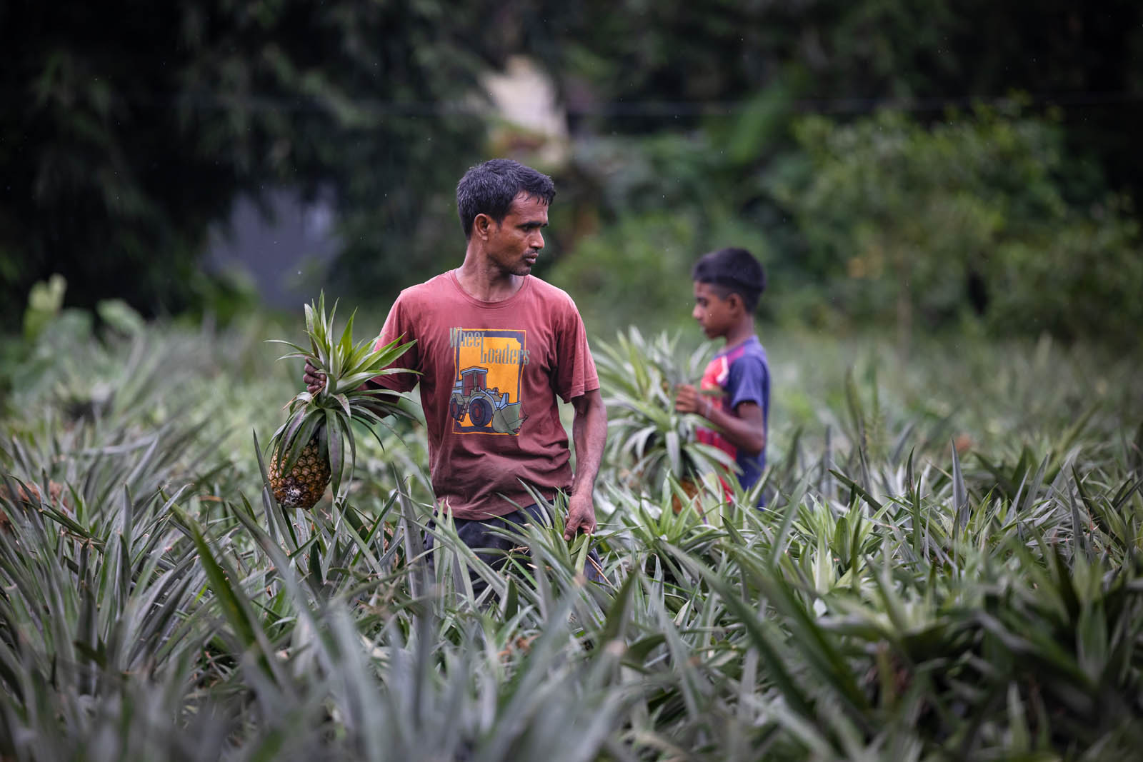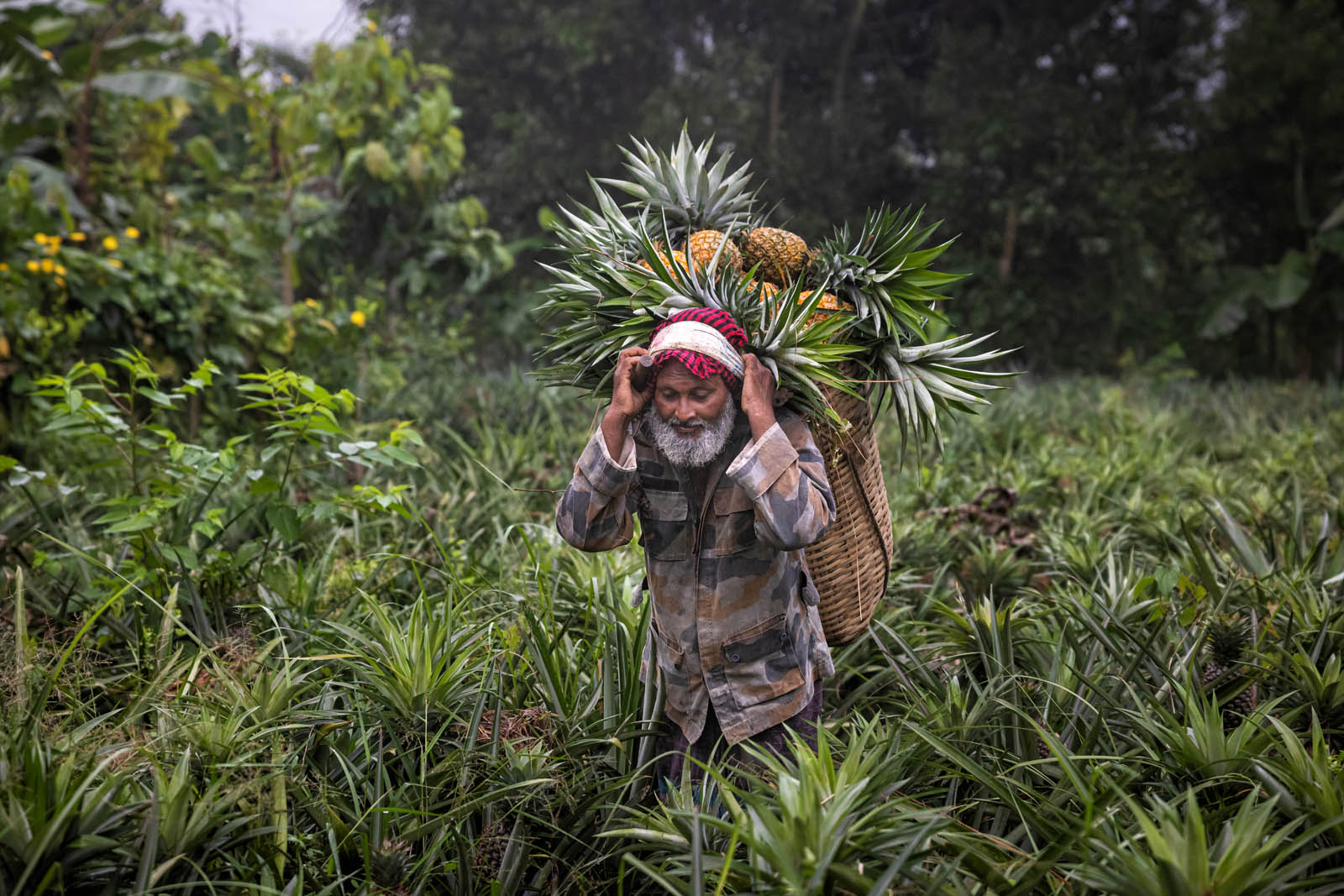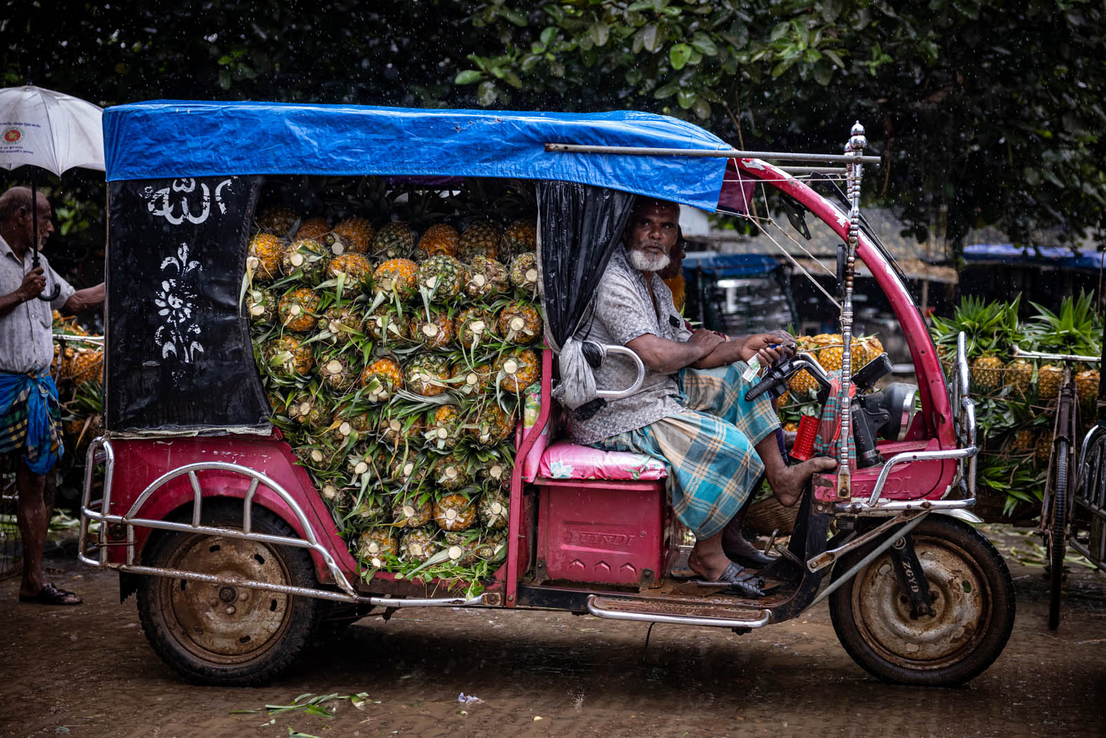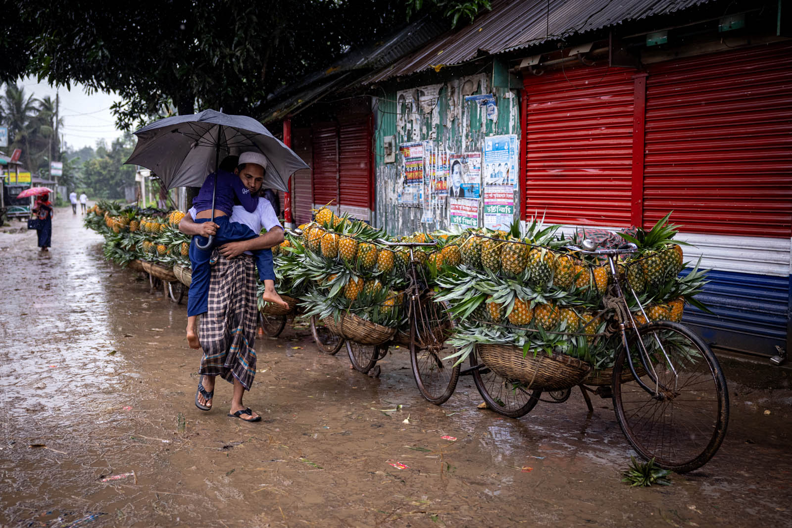 يحمل مزارعون بنغلاديشيون ثمار الأناناس على دراجاتهم الهوائية لبيعها في سوق بمدينة مادوبور في تانجيل، بنغلاديش. ووفقًا لمسؤولي الزراعة في مادوبور، تُزرع الأناناس على مساحة 8000 هكتار، حيث يُنتج 300 ألف طن منها هذا العام، ما يجعلها أكبر منطقة زراعية في البلاد. وتُعرف منطقة مادوبور بعاصمة الأناناس. بدأ زراعة الأناناس في بنغلاديش عام 1942. وكانت جماعة غارو العرقية في قرية إيديلبور، التابعة لبلدة مادوبور، أول من زرع الأناناس، حيث جلبوا 750 شتلة من ميغالايا لبدء الزراعة. وبفضل تطوير هذه الزراعة، تُزرع الأناناس الآن في مناطق مختلفة من البلاد.