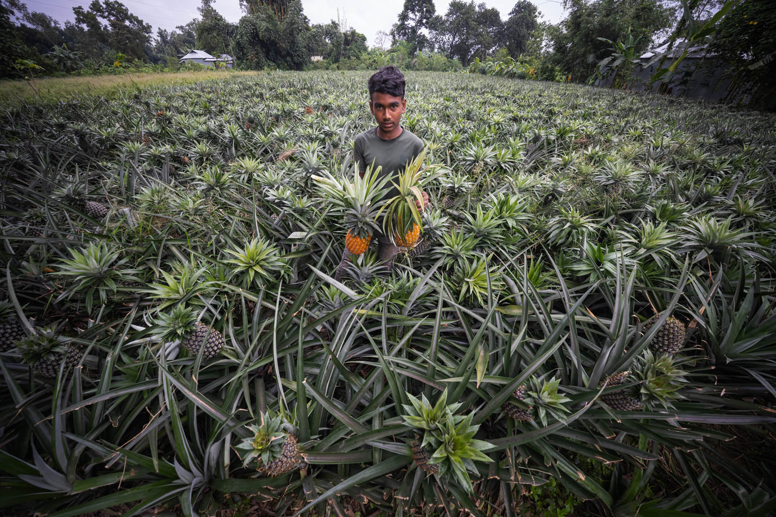Ethnic Garo community of Idilpur Village in Madhupur Upazila was the first to cultivate pineapple. They brought 750 saplings from Meghalaya to start the cultivation. By enriching that cultivation, pineapples are now farmed in different parts of the country.