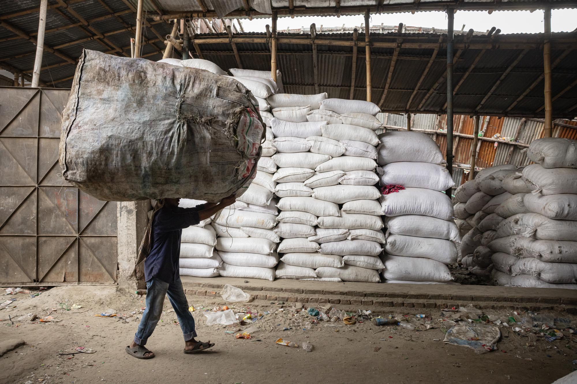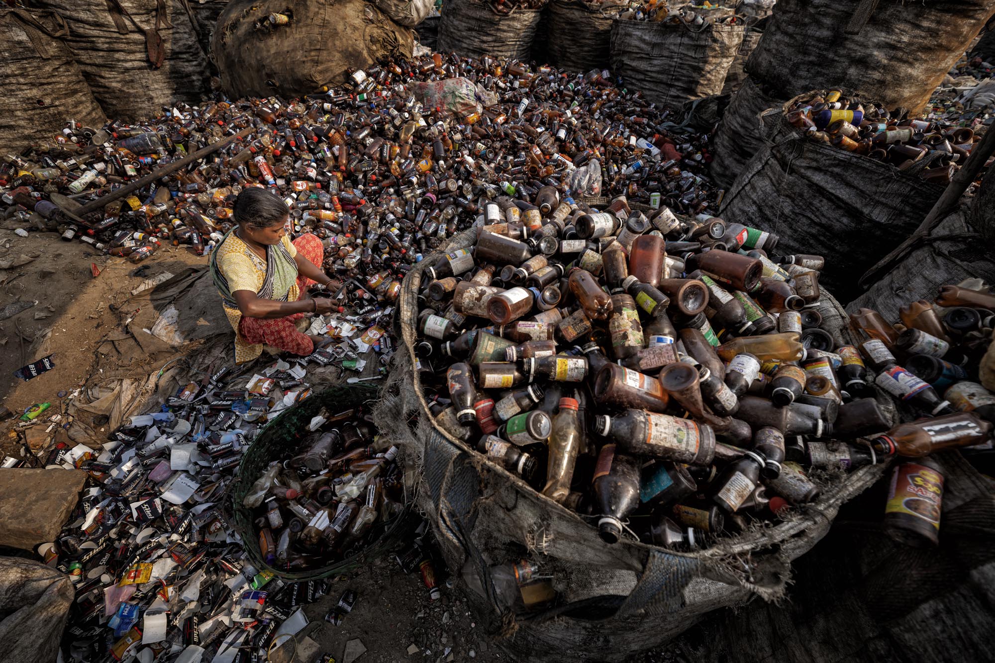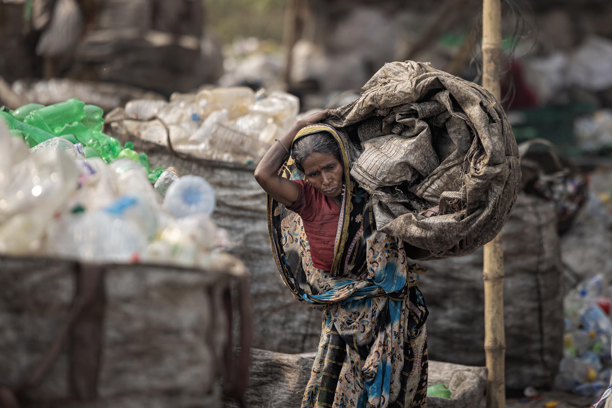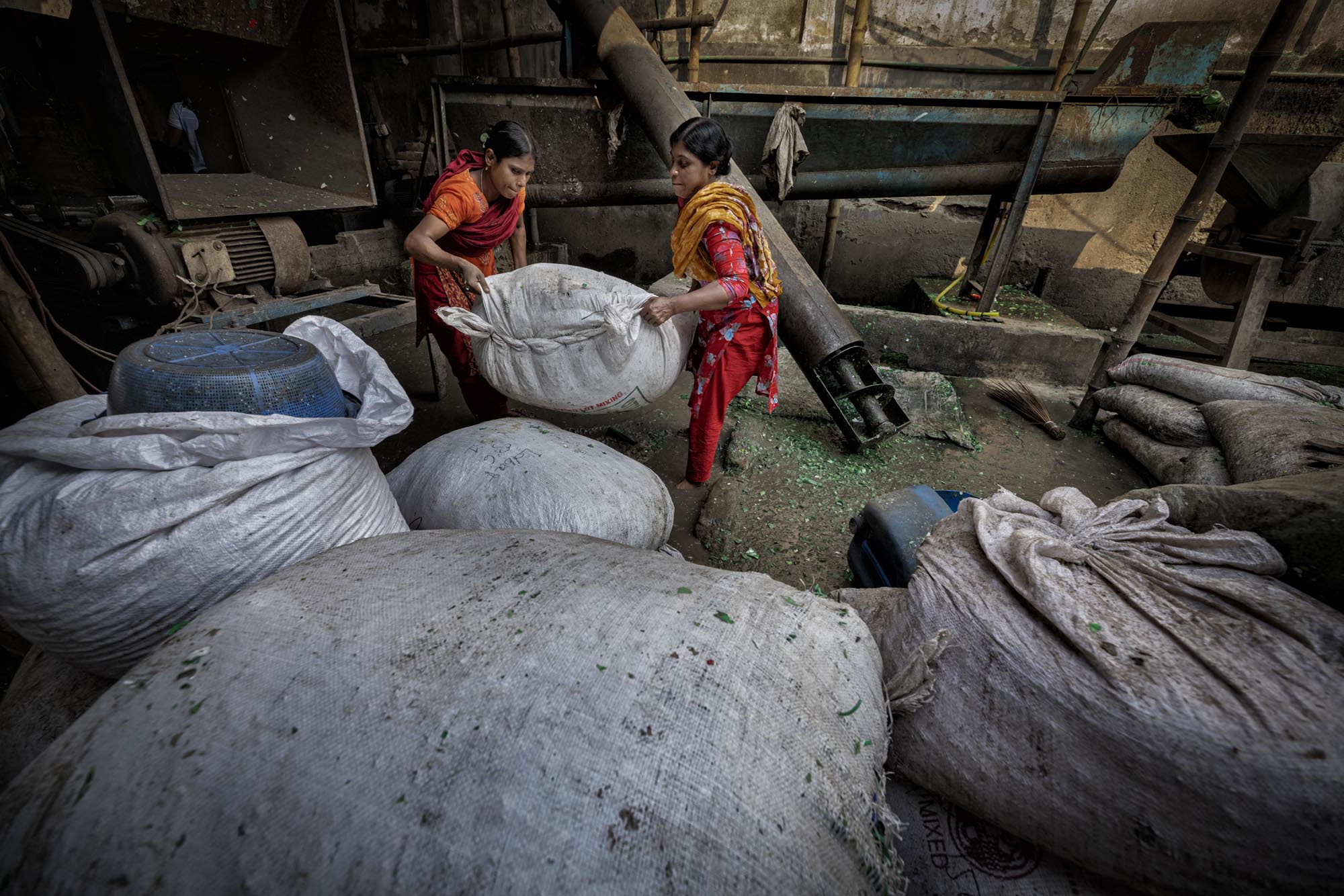 Workers Recycling Plastic Bottles in Dhaka, Bangladesh There are many plastic bottle recycling factory located in Dhaka where people from different age works together while many of them are children, Such factories creates new jobs for the poor people living in the outskirt in the capital,nearly 200 factories engaged in recycling plastic bottles,The average earnings range from 80 to 200 tk, the latter being earned by a worker who clocks about 10 to 12 hours of work, The plastic bottles are mainly collected by hawkers and street children, It is estimated that nearly 100,000 waste pickers work in Dhaka alone, waste picking children in Dhaka are popularly known as ‘tokai’, which will be later on sales to local factories. Everyday factories like those recycles thousands of bottles to make different kinds of plastic made products, Or it is exported outside the country.